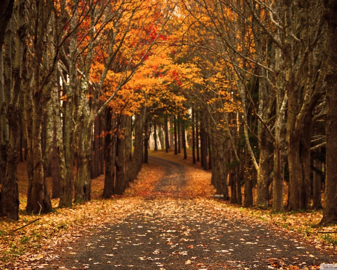 Обои Дорога через осенний лес