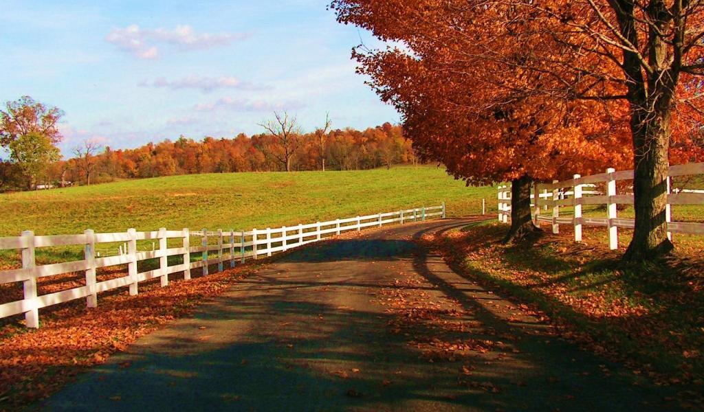 Обои Дорога у фермы осенью