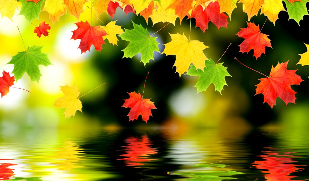 Обои Осенние листья над водой