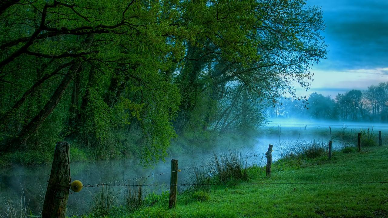 Обои Весенние деревья над рекой
