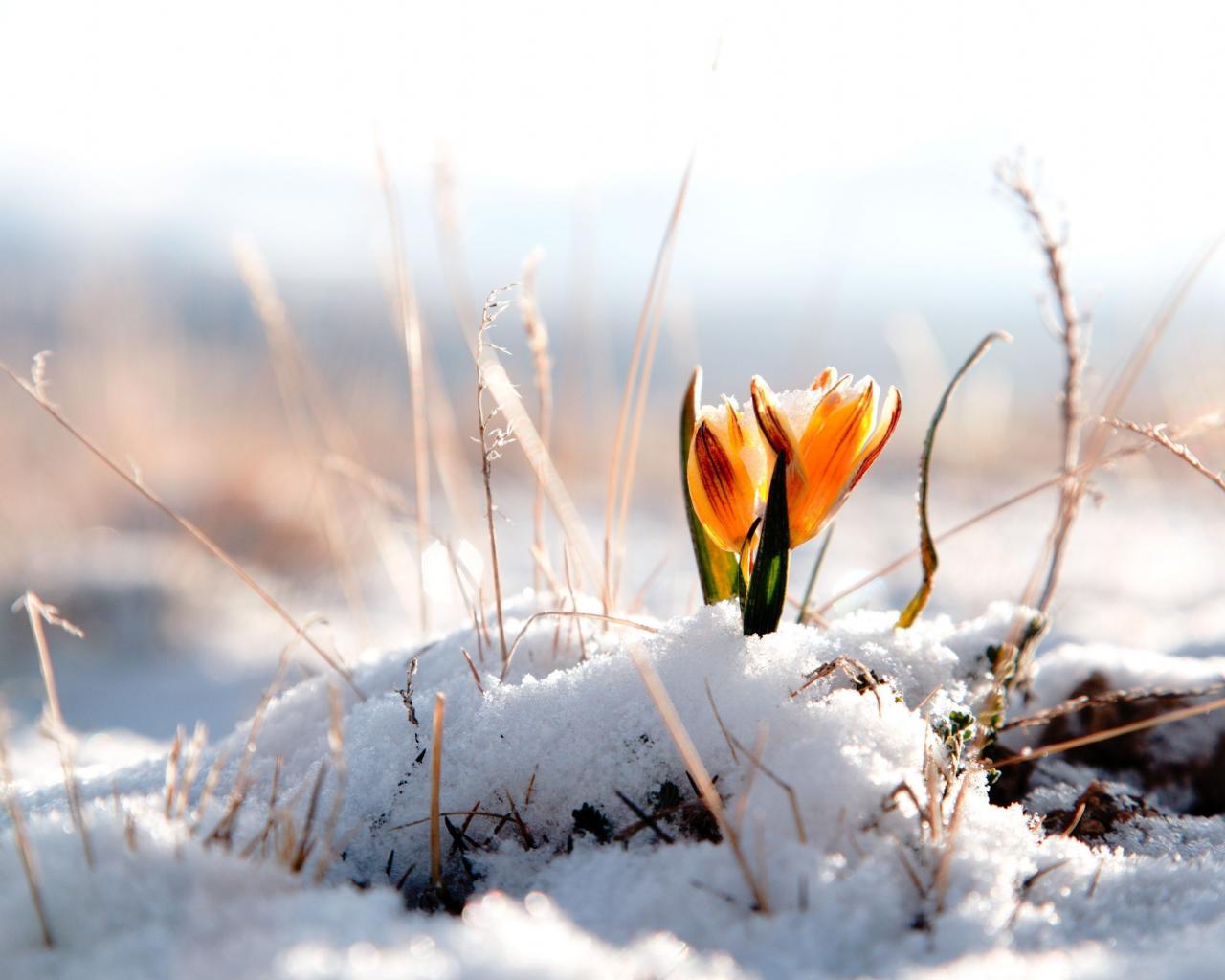 » Обои Цветы на талом снегу
