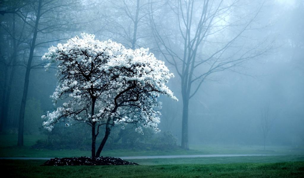 Обои Туманная погода весной в лесу