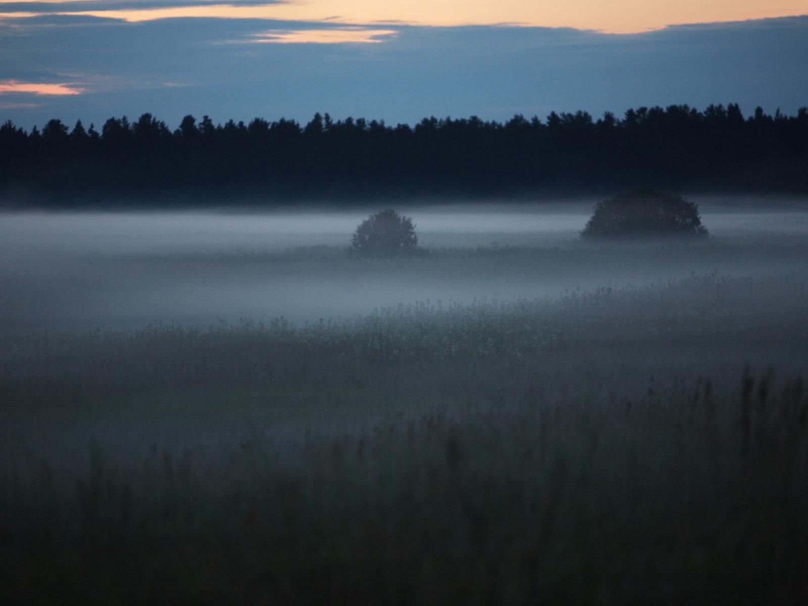 Обои Весенняя поляна с туманом