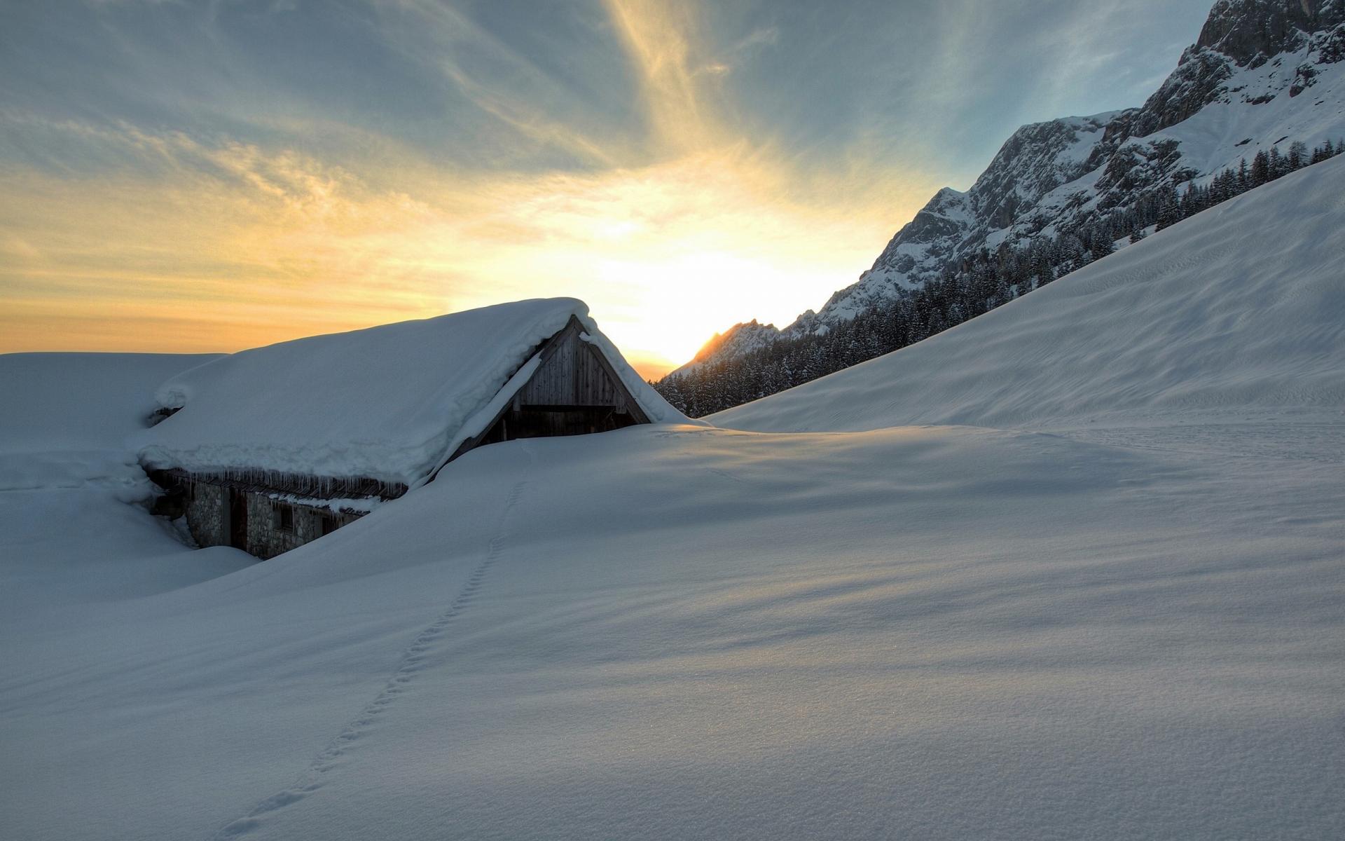 Обои Избушку занесло снегом по самую крышу