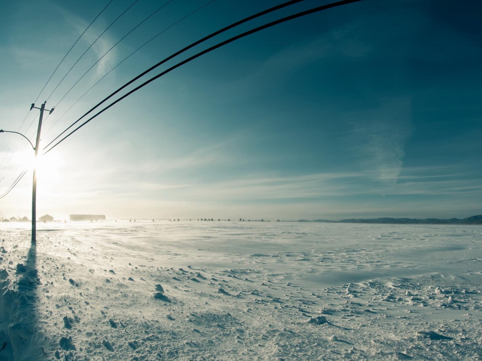 Обои Линия электропередач вдоль заснеженного поля