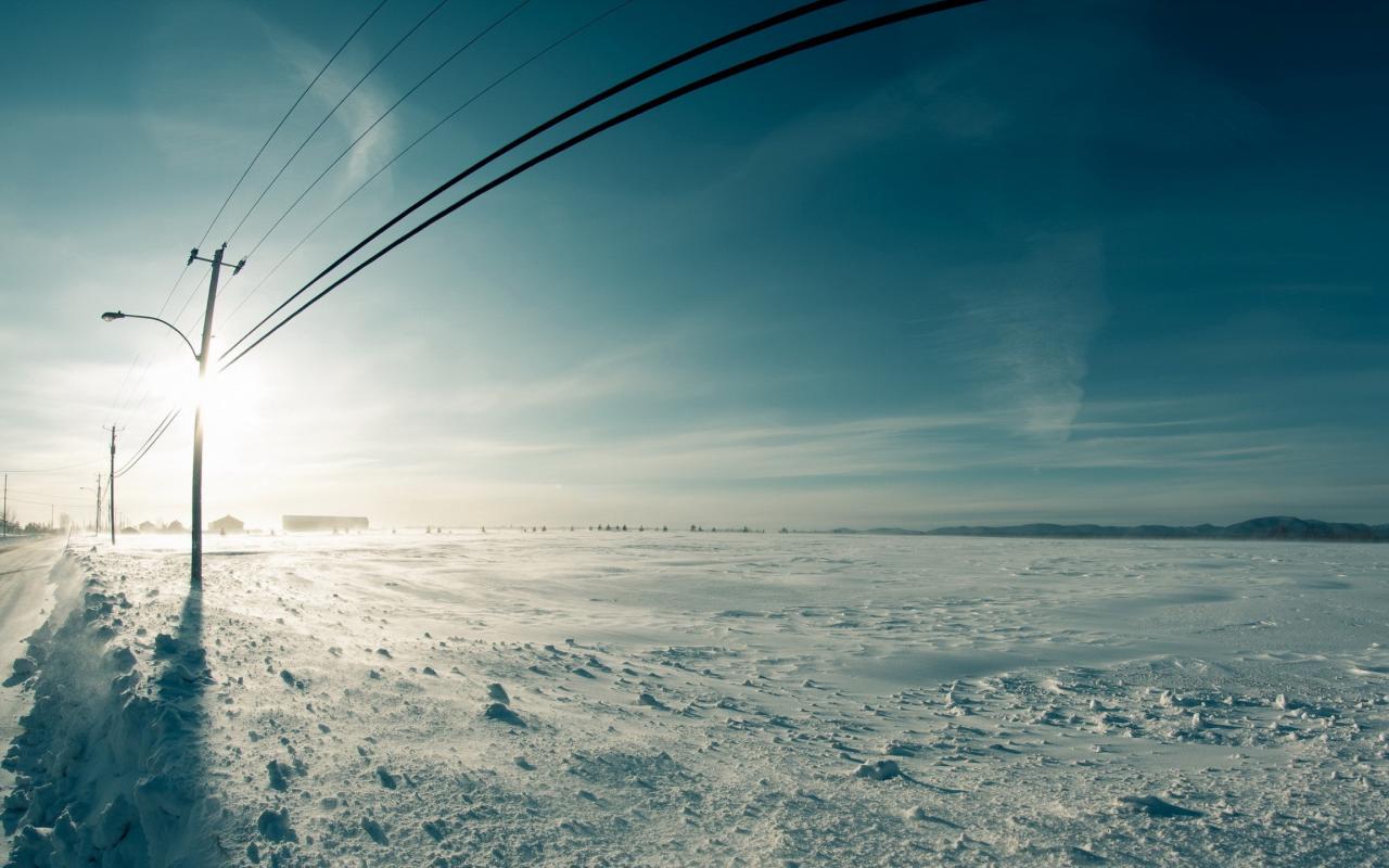 Обои Линия электропередач вдоль заснеженного поля