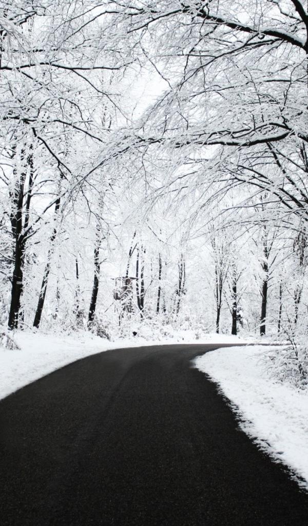 Обои Черное шоссе в белом лесу
