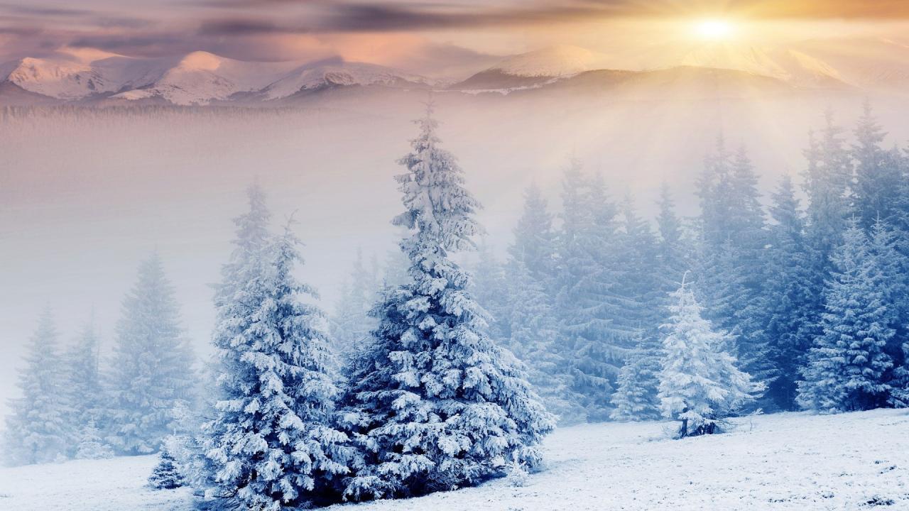 Обои Зимний туман в заснеженном лесу