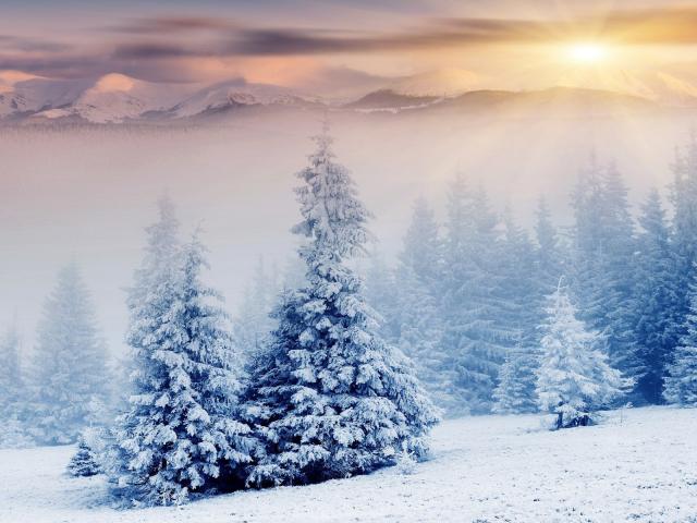 Обои Зимний туман в заснеженном лесу
