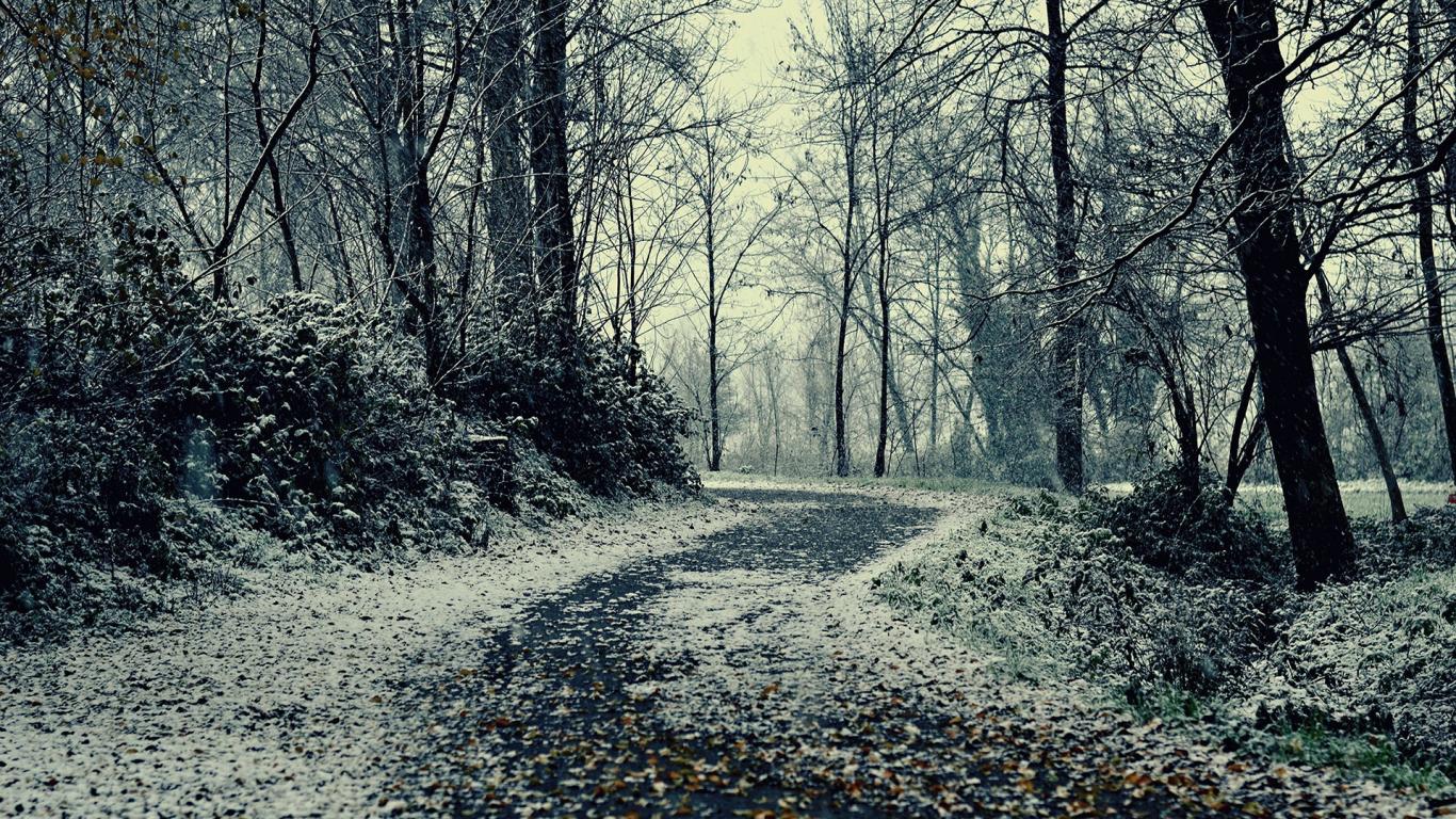 Обои Снег припорошил опавшие листья на аллее