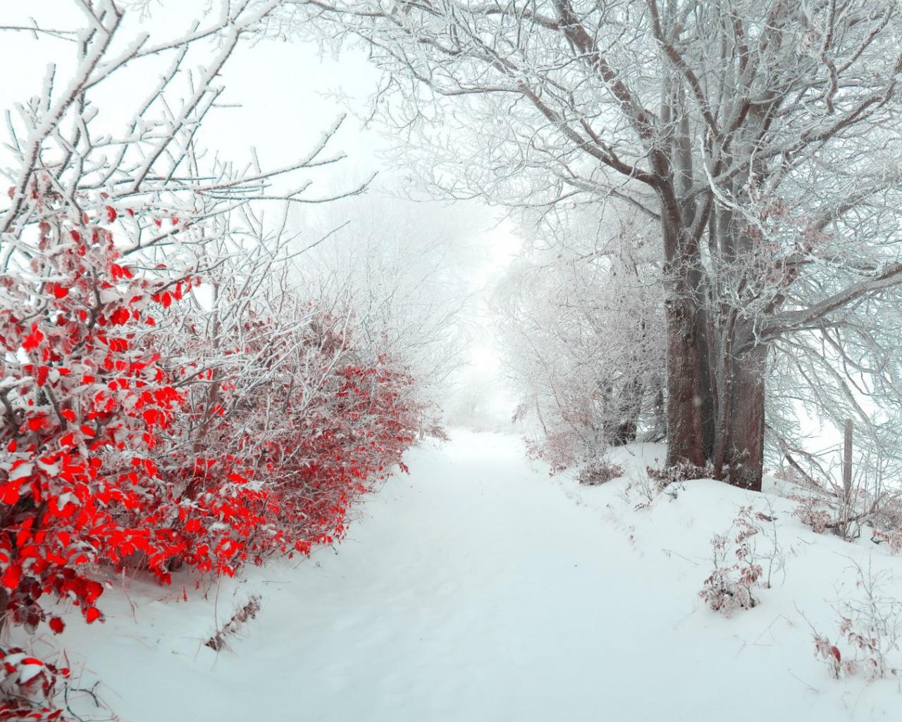 Обои Снег на красных листьях