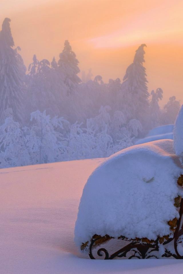 Обои Скамья после обильного снегопада