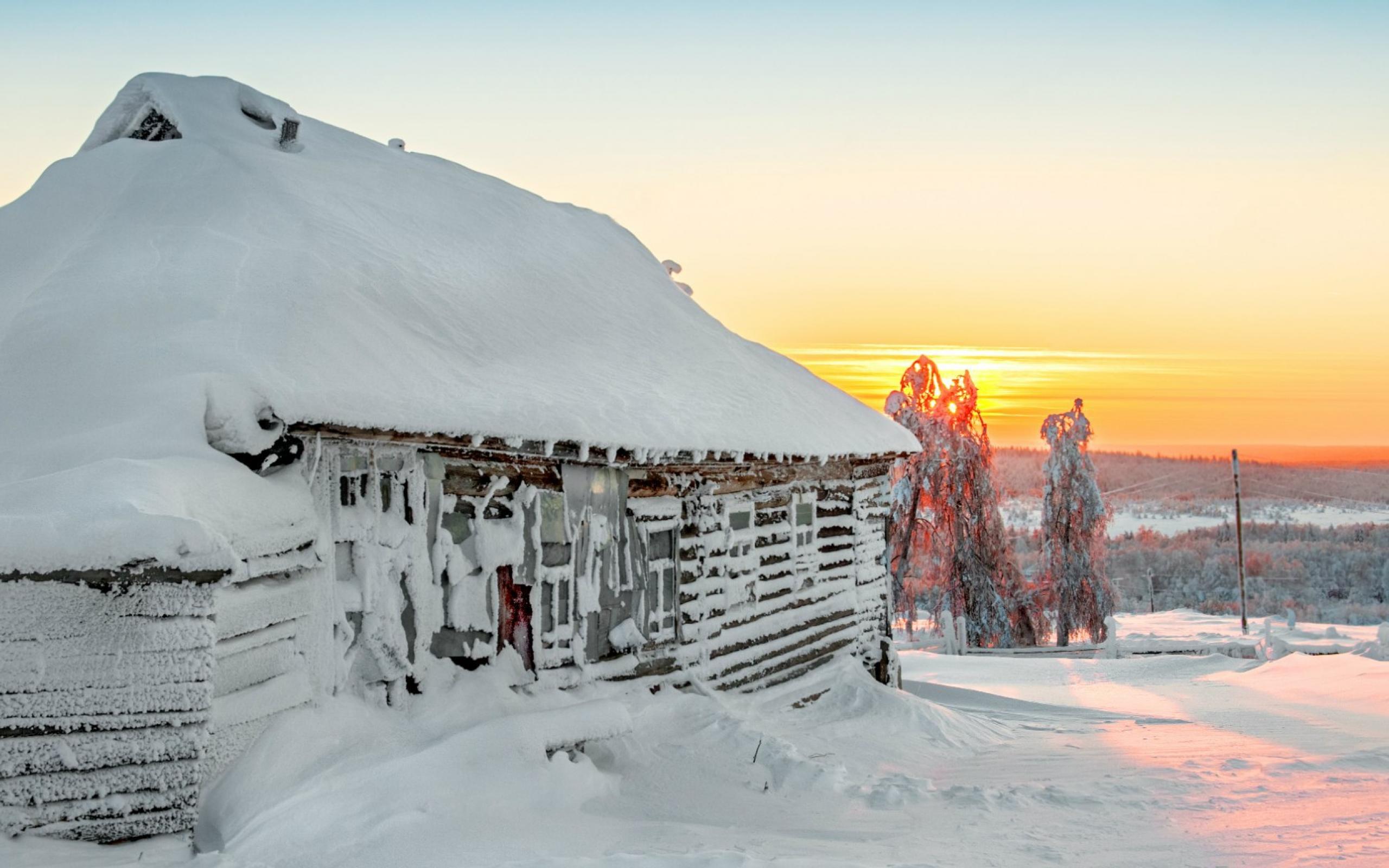 Обои Изба облеплена снегом