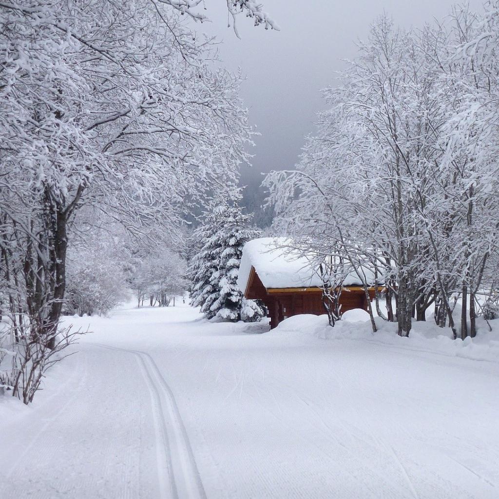 Обои Домик в зимнем лесу