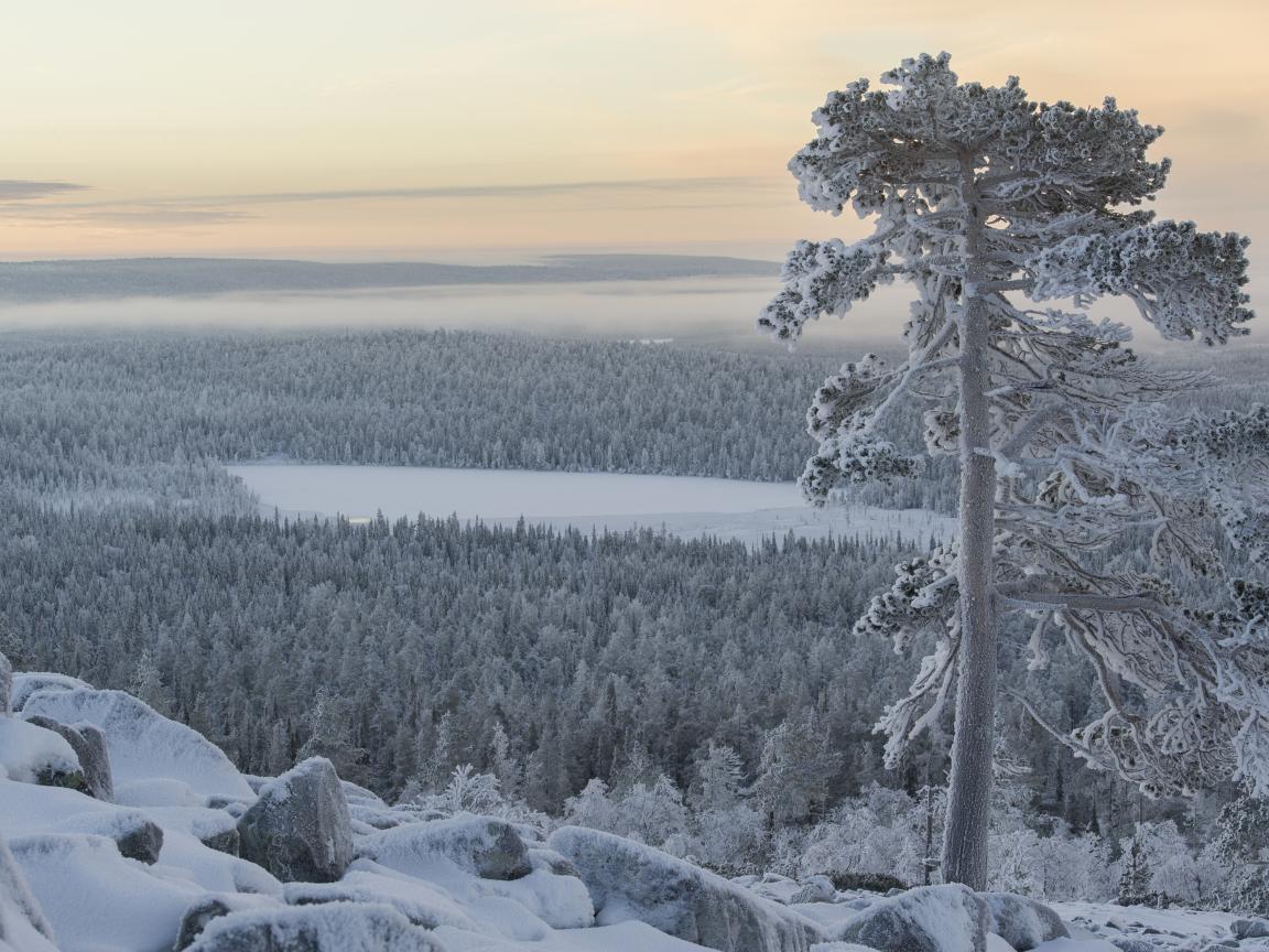 Обои Зимнее озеро в тумане