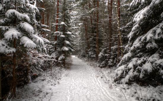 Обои Дорога в хвойном лесу
