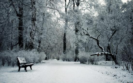 Обои Скамейка в зимнем парке