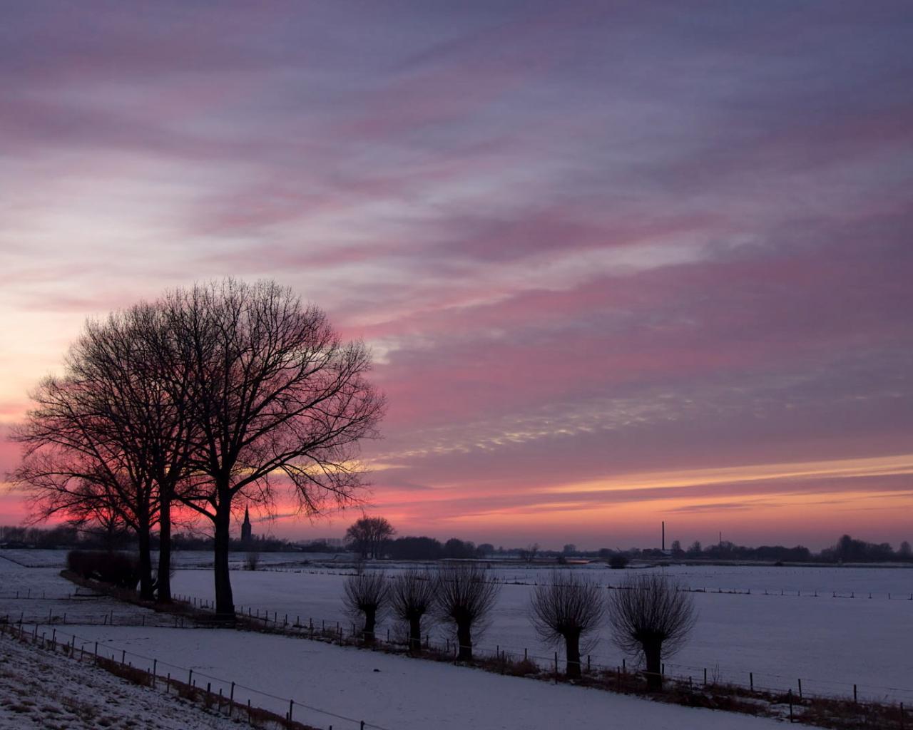 Обои Закат на зимнем поле