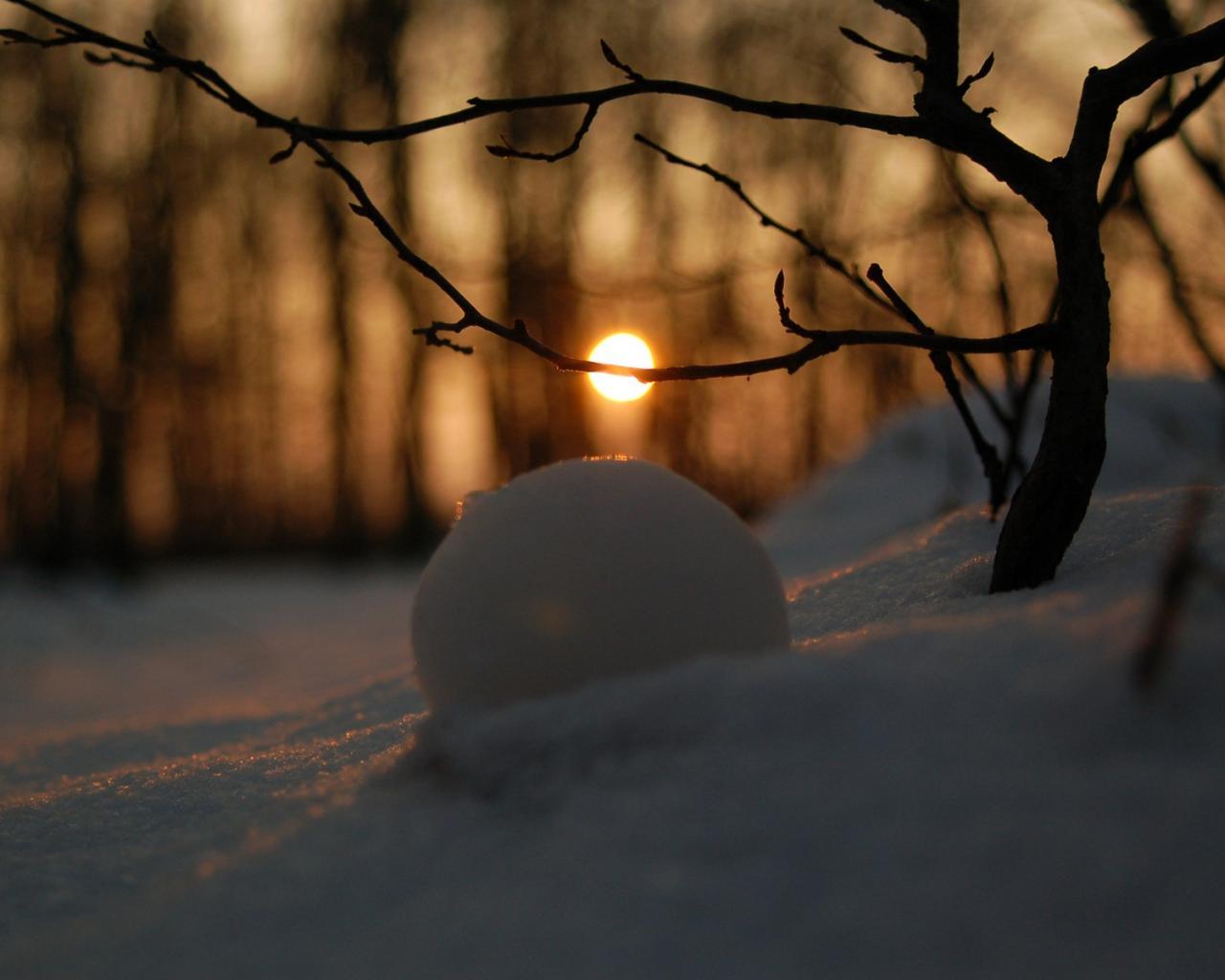 Обои Снежный пейзаж с солнцем