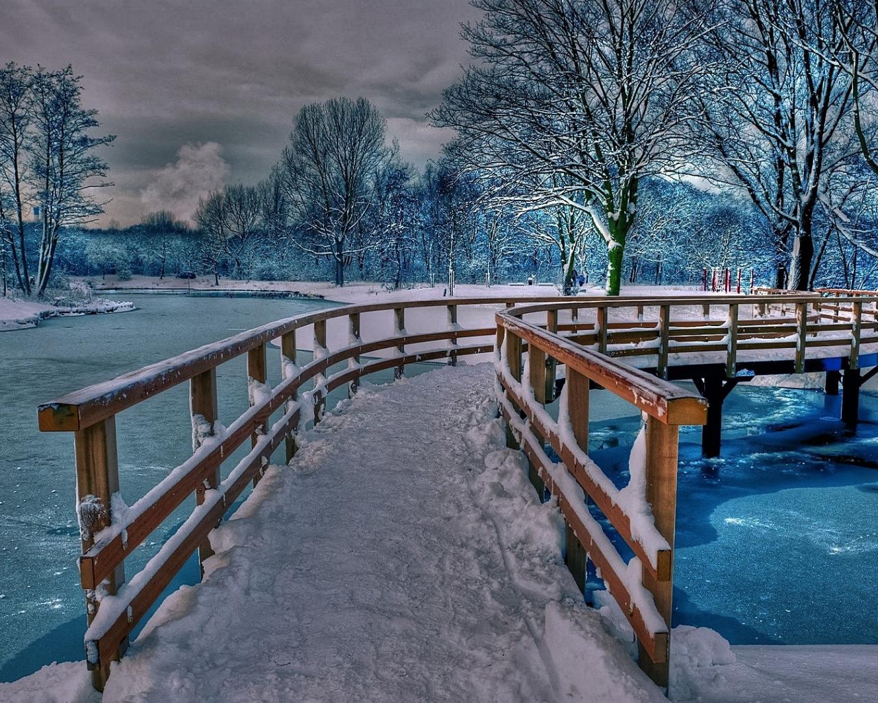 Обои Мост над замерзшей рекой