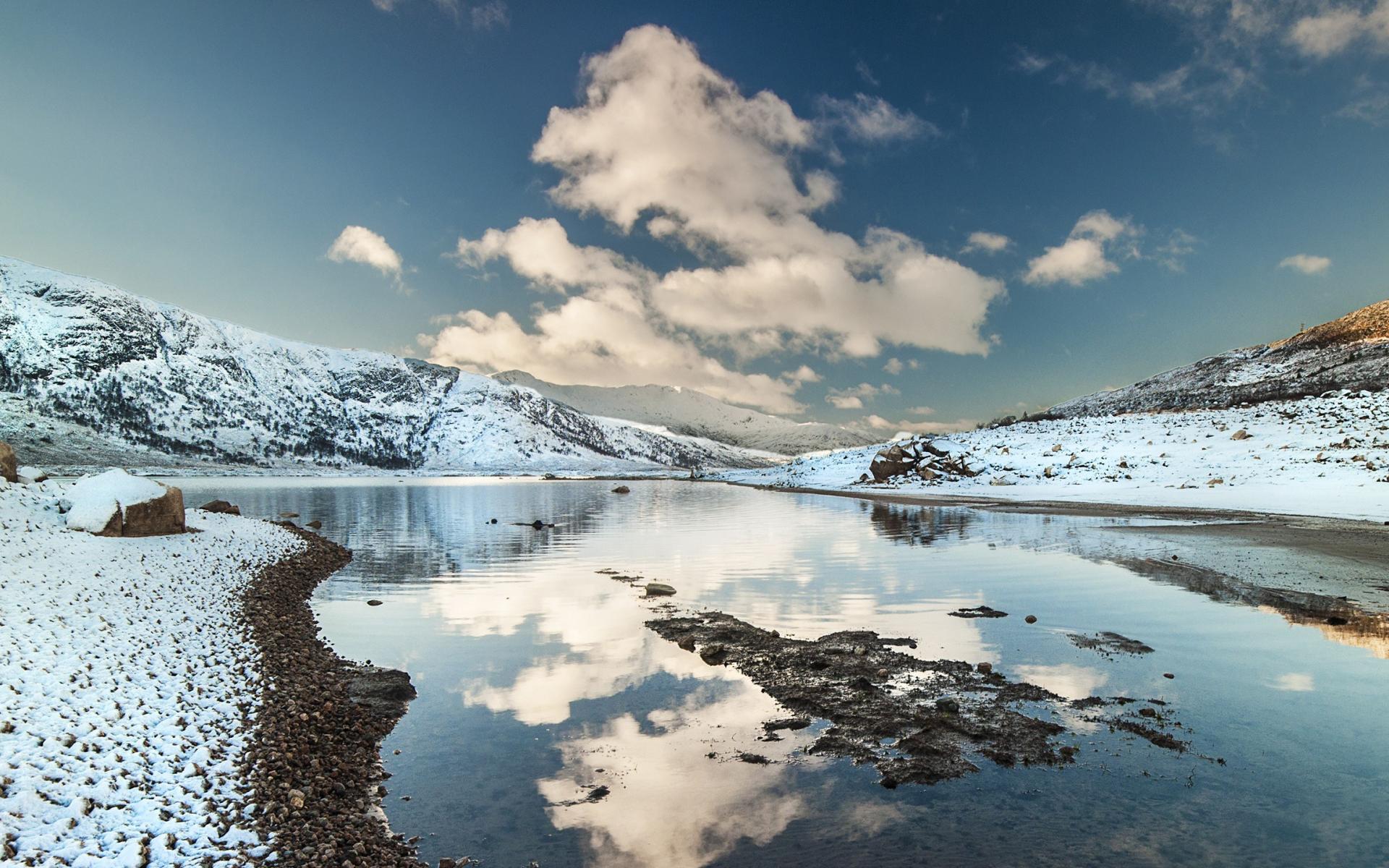 Обои Снег на берегу озера