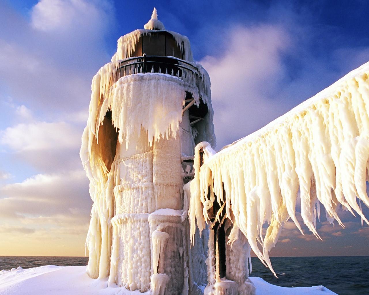 Обои Маяк в ледяных сосульках