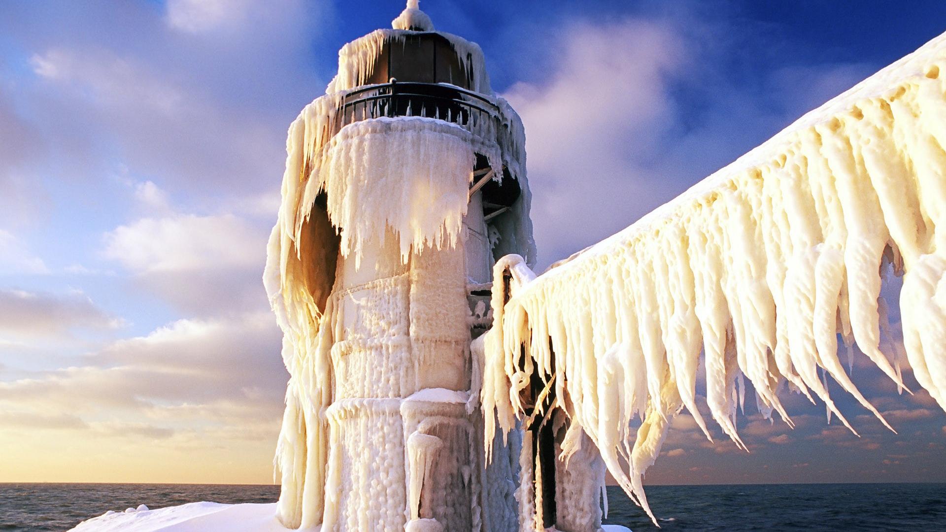 Обои Маяк в ледяных сосульках