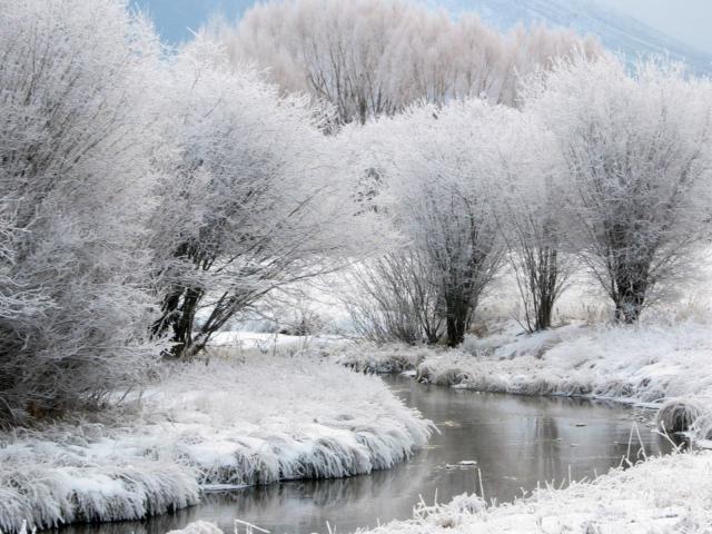 Обои Зимний пейзаж с незамершей рекой