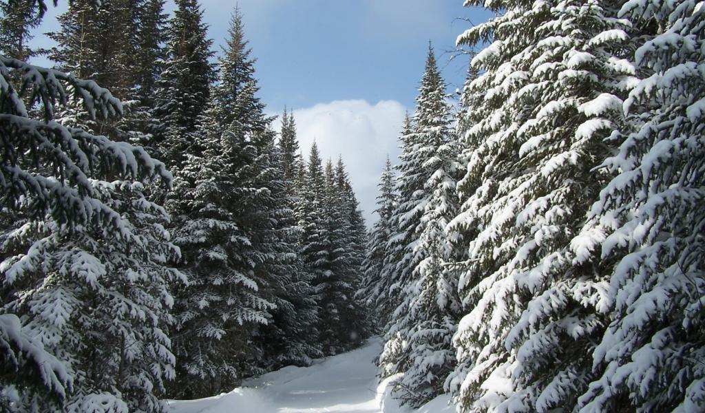 Обои Еловый лес в снегу