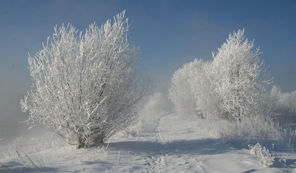 Обои Следы человека на снегу