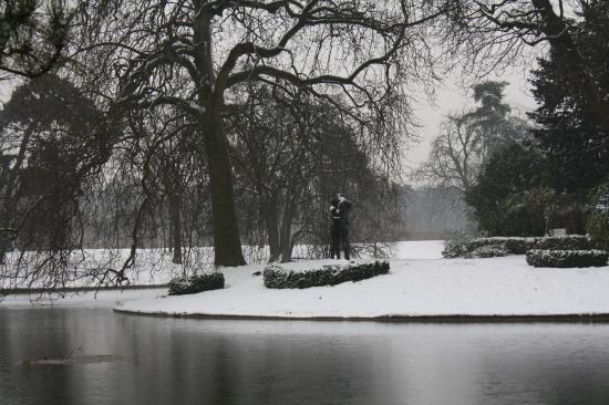 Обои Снег в Париже елки вокруг Эйфелевой башни