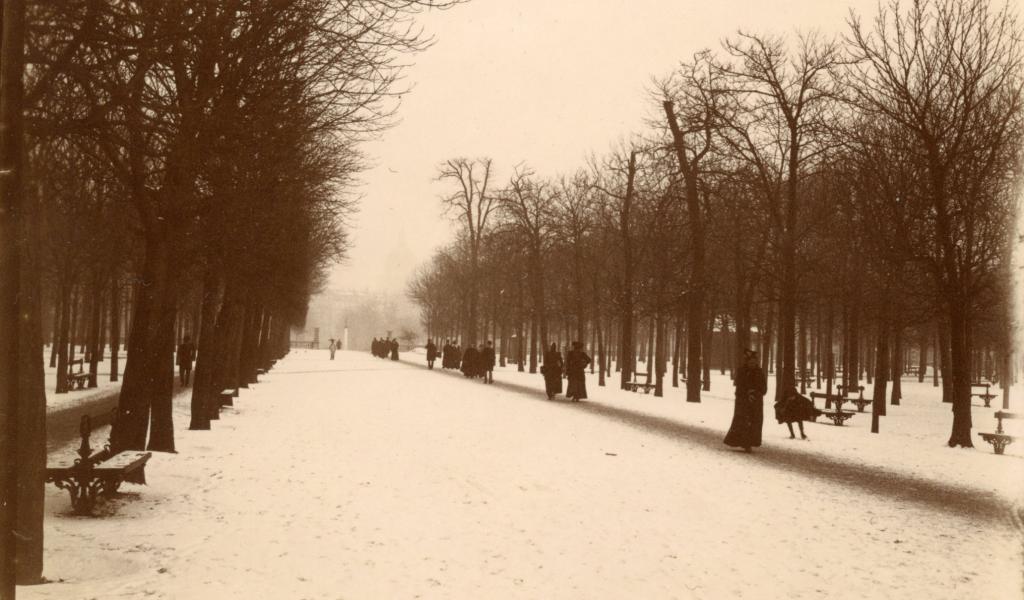 Обои Снег в Париже елки вокруг Эйфелевой башни