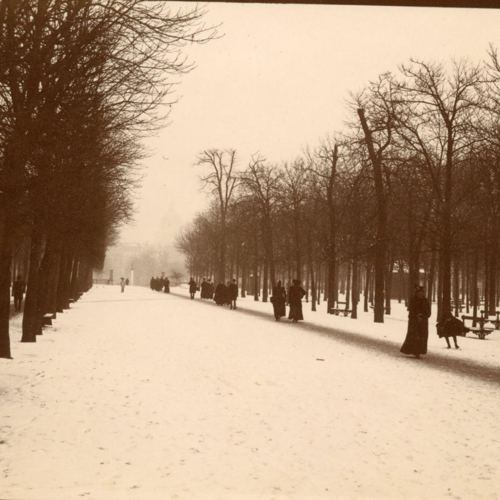 Обои Снег в Париже елки вокруг Эйфелевой башни