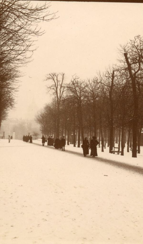 Обои Снег в Париже елки вокруг Эйфелевой башни