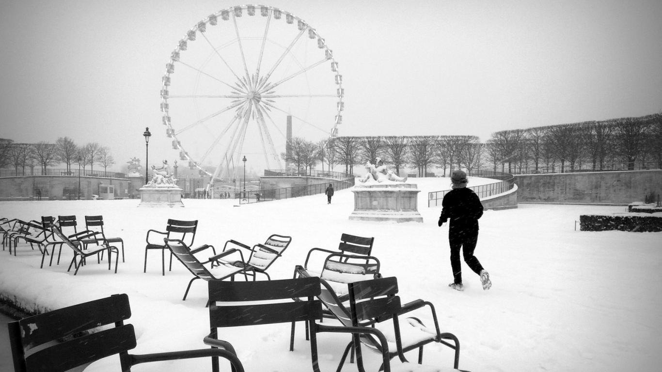 » Обои Снег в Париже чертово колесо