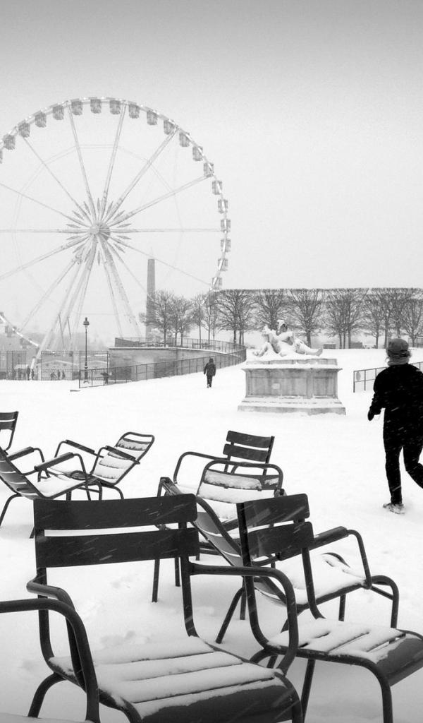 Обои Снег в Париже чертово колесо