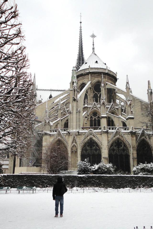 Обои Снег в Париже Собор Парижской Богоматери
