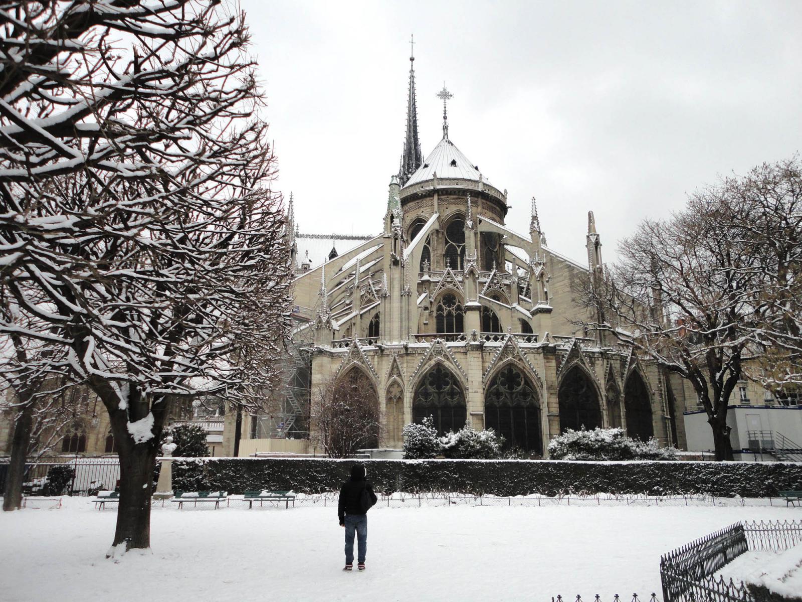 Обои Снег в Париже Собор Парижской Богоматери