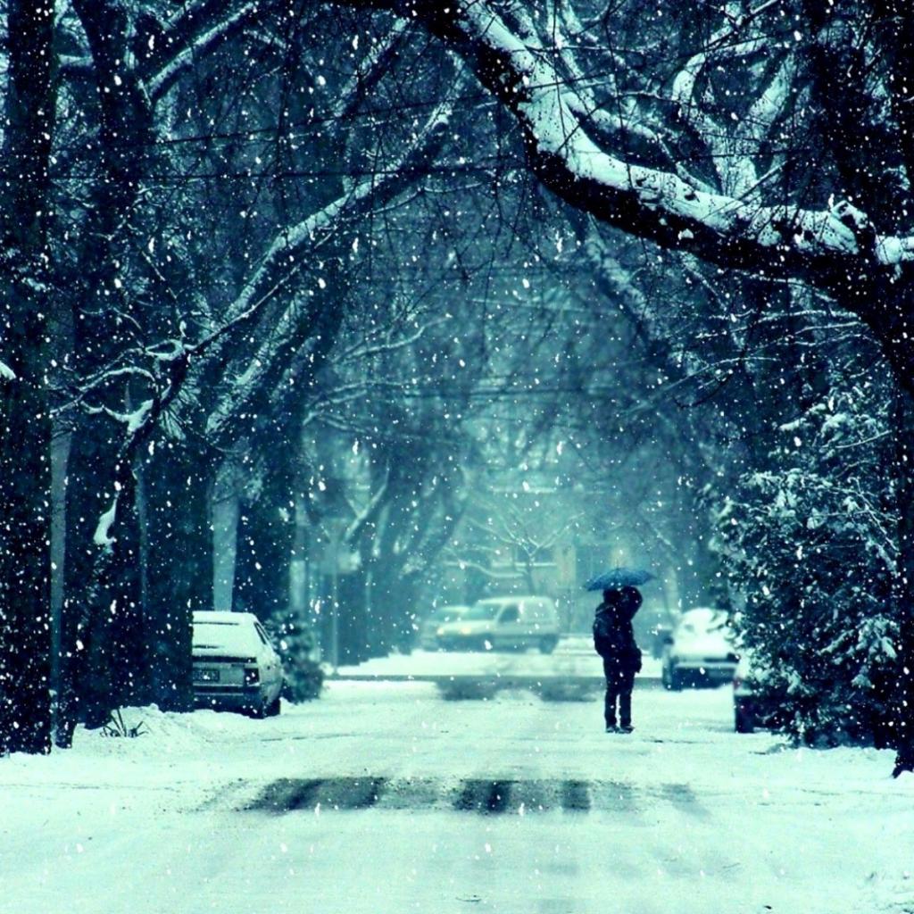 » Обои Человек и заснеженная дорога