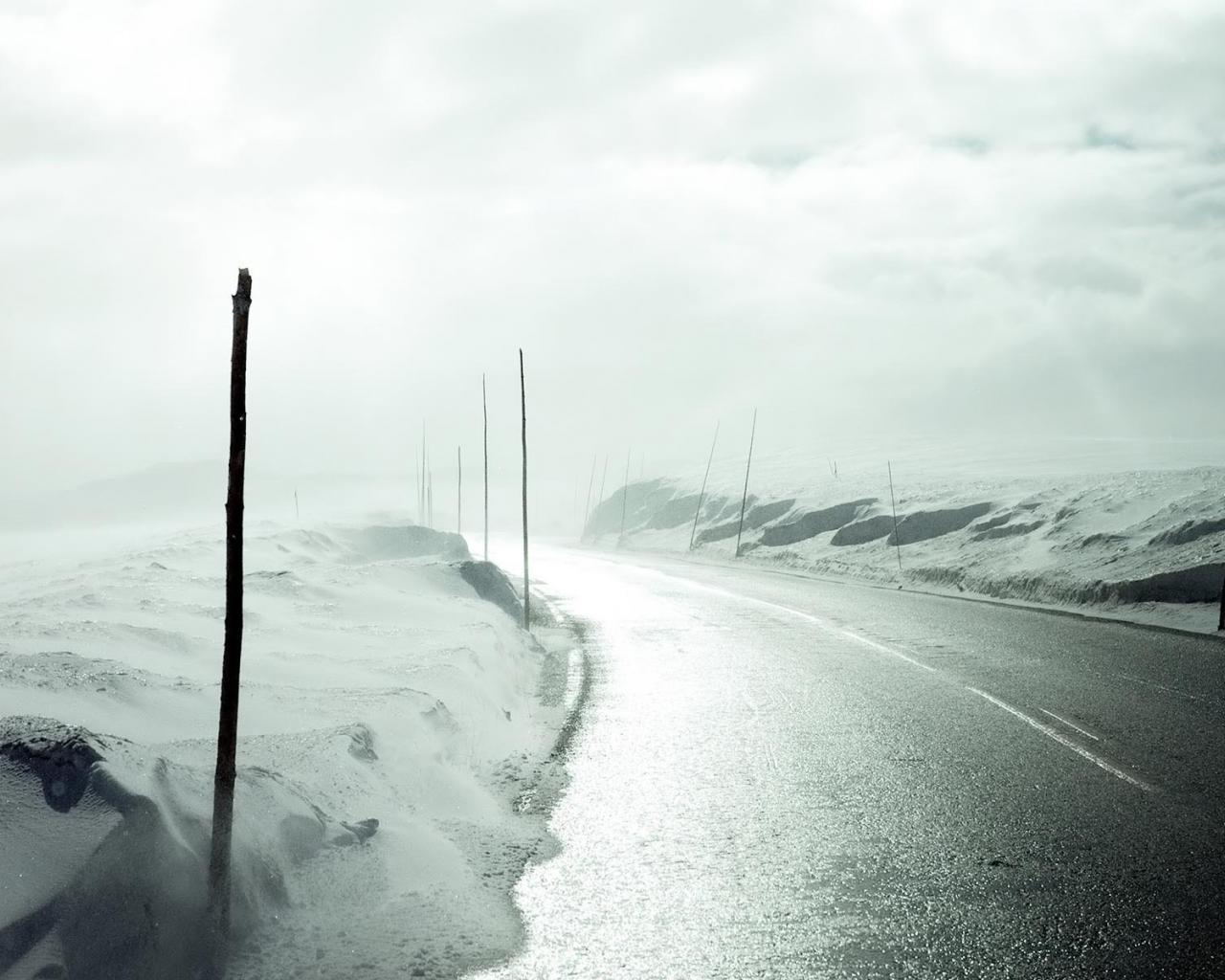 Обои Затуманенная зимняя дорога