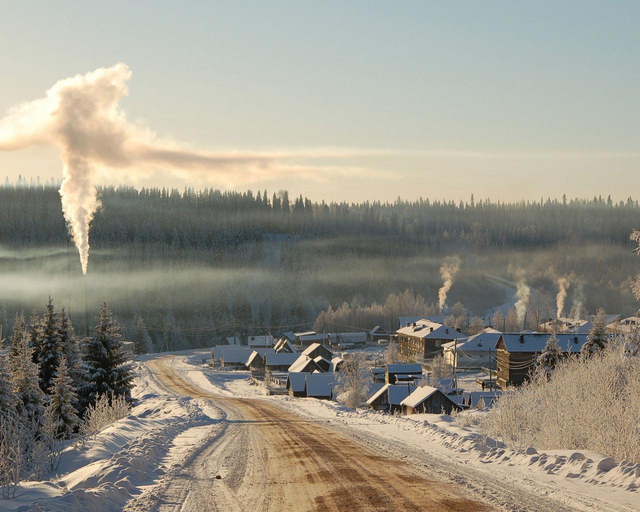 Обои Зимняя дорога и посёлок