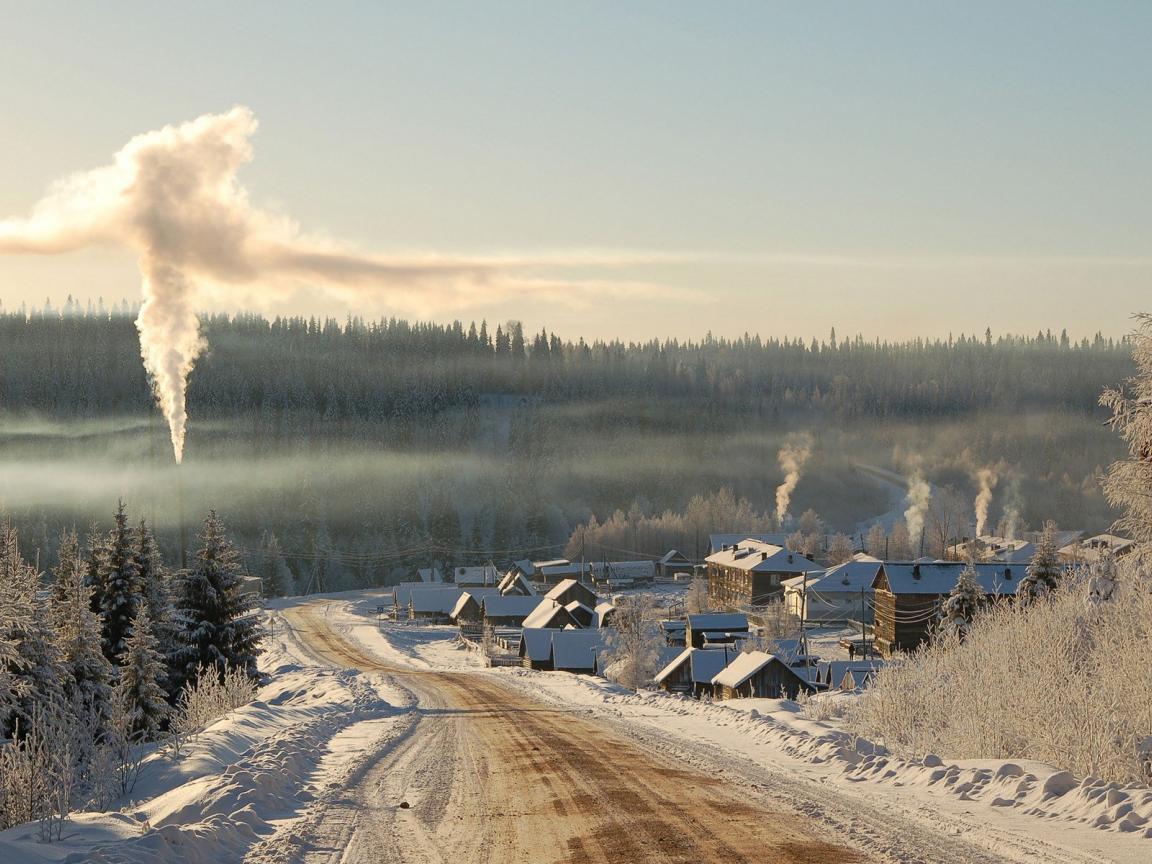 Обои Зимняя дорога и посёлок