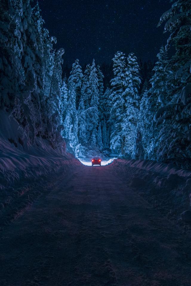 » Обои Ночная зимняя дорога