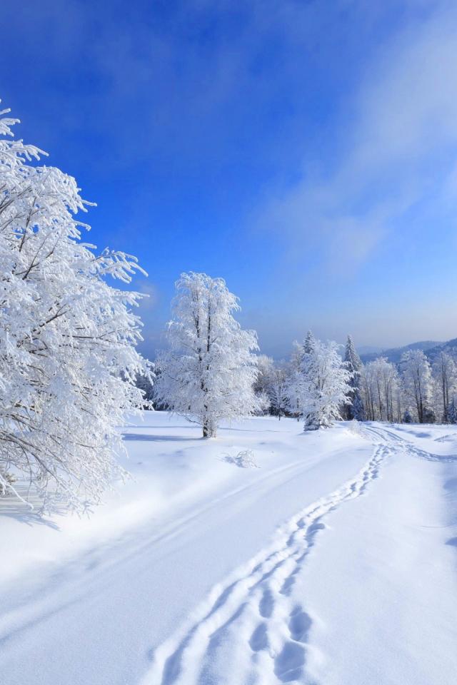 Обои Заснеженная дорога на холмистой местности