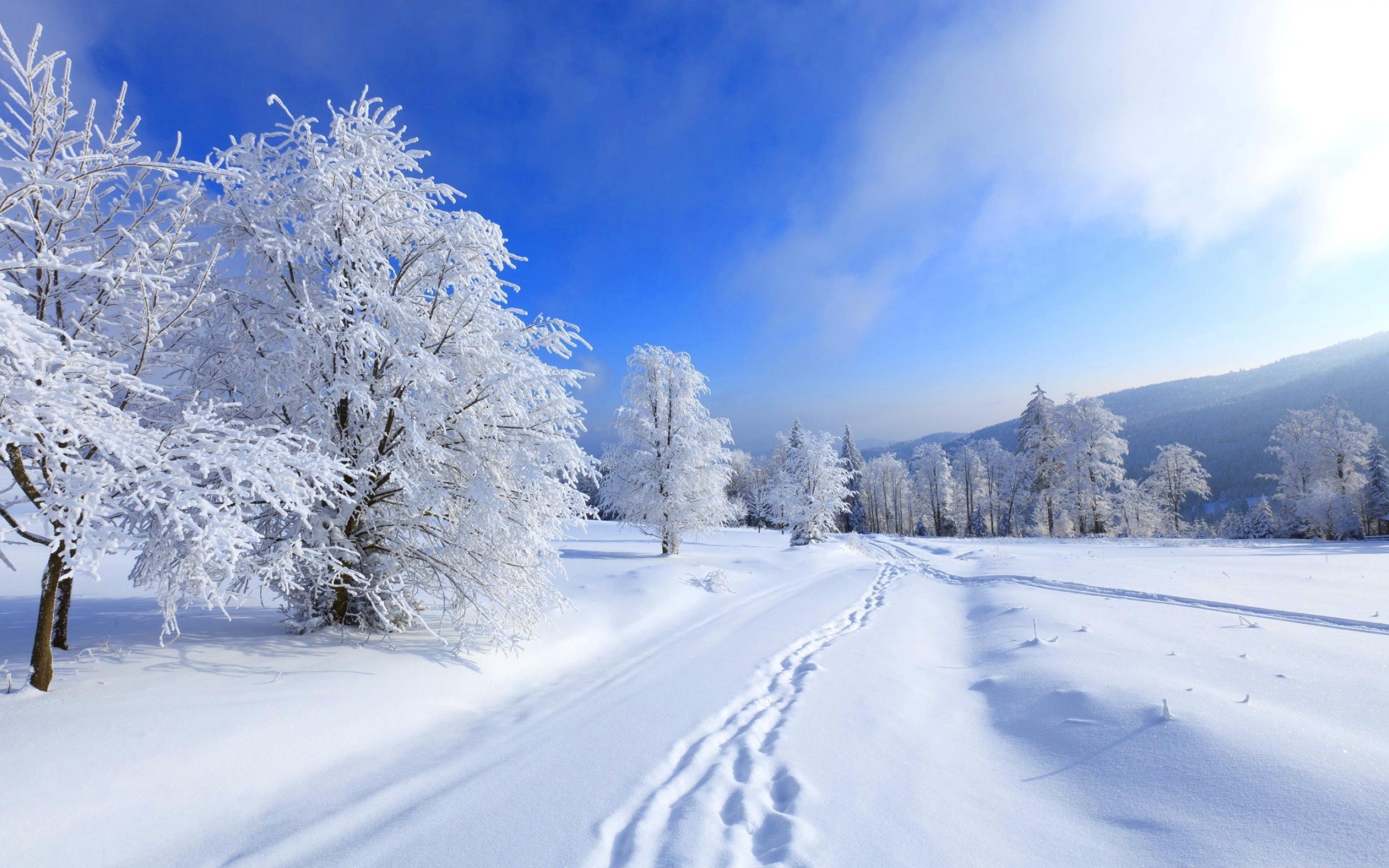 Обои Заснеженная дорога на холмистой местности