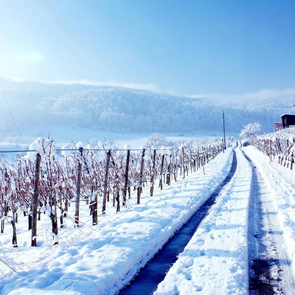 Обои Заснеженная дорога в ясную погоду