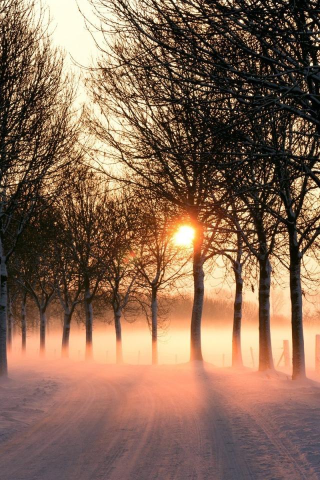 Обои Зимняя дорога на закате дня