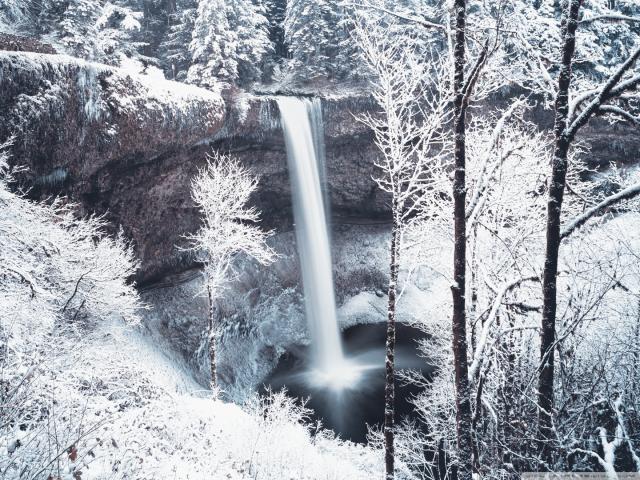 » Обои Водопад в зимнем лесу