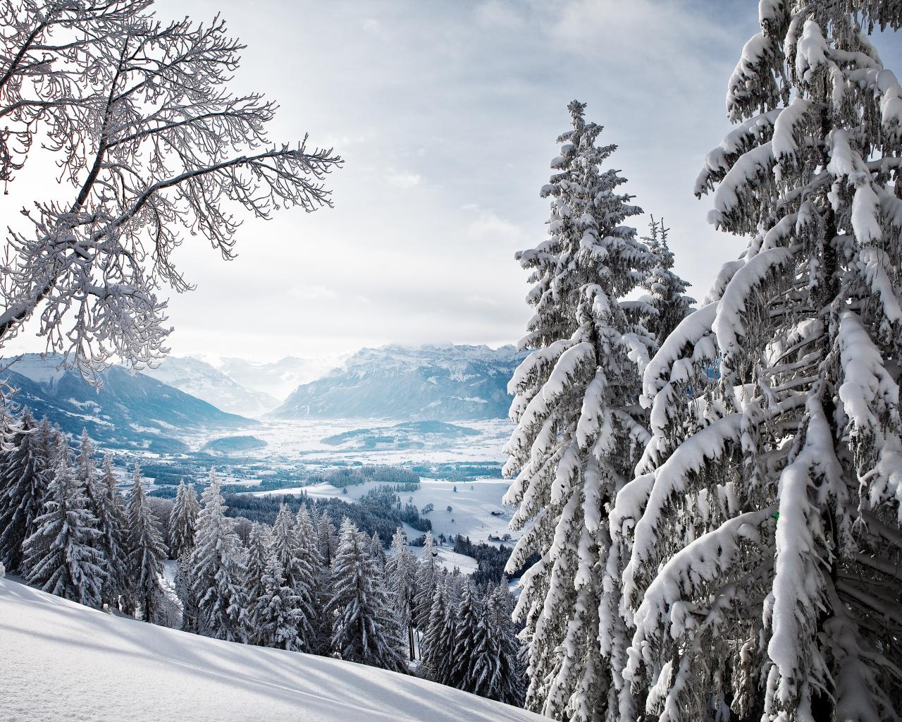 Обои Зимний пейзаж в горах