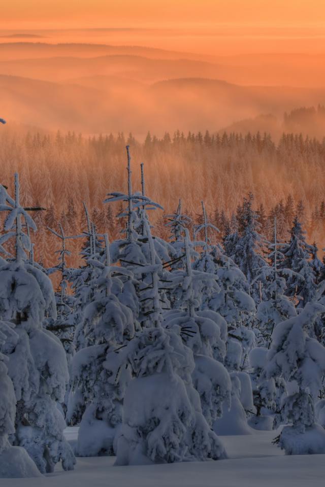 Обои Зимний лес на фоне заката